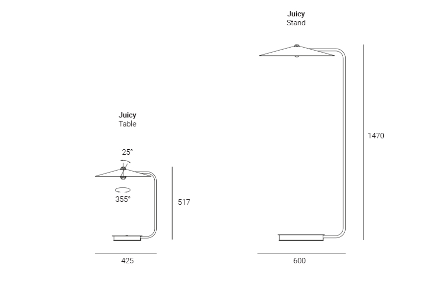 Lampa podłogowa nawiązuje kształtem do klasycznych rozwiązań. Smukła noga oraz minimalistyczny, stożkowaty klosz skontrastowany jest jednak z organiczną formą źródła światła Juicy. Powstały produkt jest świeży i nieoczywisty, wpisujący się we wnętrza bardziej klasyczne oraz współczesne.