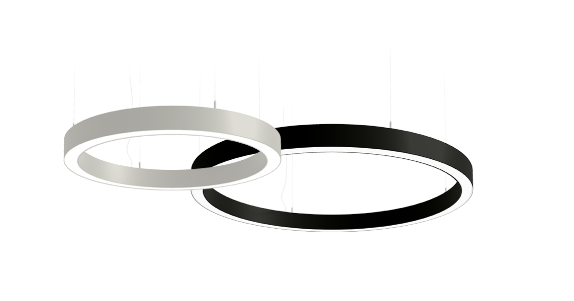 W zależności od wybranej średnicy oprawy Loop budowane są z różnej liczby precyzyjnie zaprojektowanych łuków — od dwóch w mniejszych formach, aż do dziesięciu w największych konfiguracjach. Taka modułowa konstrukcja pozwala swobodnie operować skalą i proporcjami, dopasowując oprawę zarówno do kameralnych wnętrz, jak i rozległych przestrzeni komercyjnych. Różnorodność średnic daje pełną kontrolę nad charakterem kompozycji, umożliwiając tworzenie spójnych, a jednocześnie zróżnicowanych aranżacji świetlnych opartych na jednej, konsekwentnej formie.