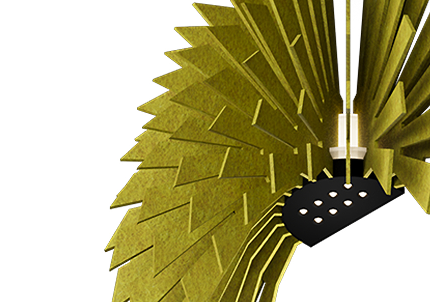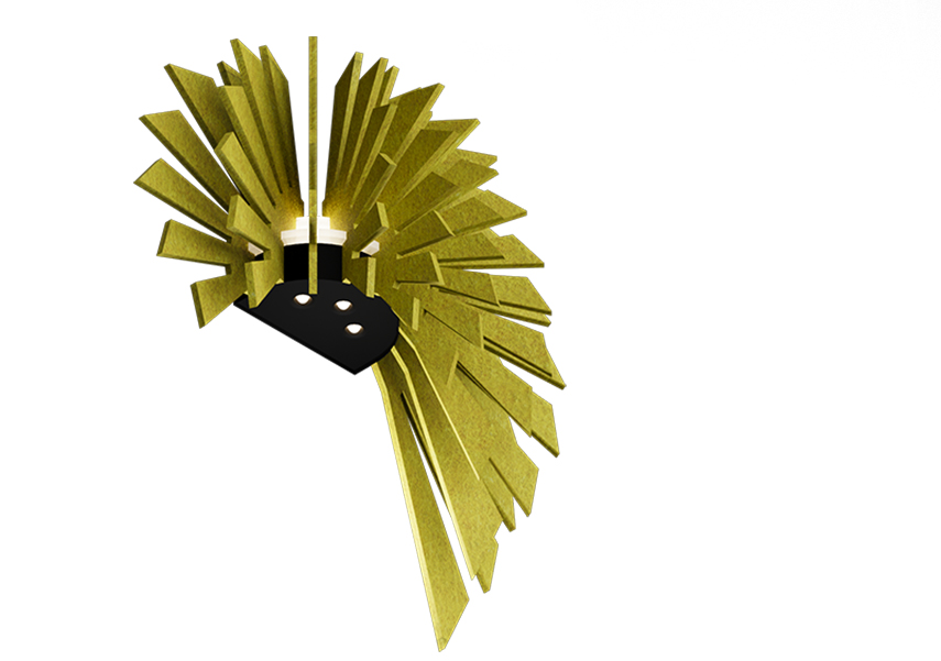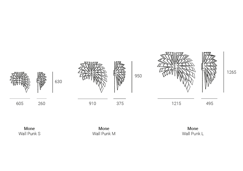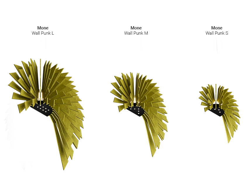 Mone Wall Punk to ścienna manifestacja awangardy, odważnie zrywająca z konwencjami. Jego nieregularnie ułożone panele filcowe, niczym kolce punkowej fryzury, tworzą dynamiczną, niemal rzeźbiarską formę, która na ścianie staje się niezaprzeczalnym punktem centralnym. To nie tylko oświetlenie, ale prawdziwa celebracja indywidualności i nonkonformizmu, która z determinacją manifestuje charakter wnętrza, nadając mu buntowniczej elegancji i artystycznego rozmachu. To kinkiet dla tych, którzy odważą się przeciwstawić utartym schematom i pragną, by ich przestrzeń opowiadała własną, niepowtarzalną historię.