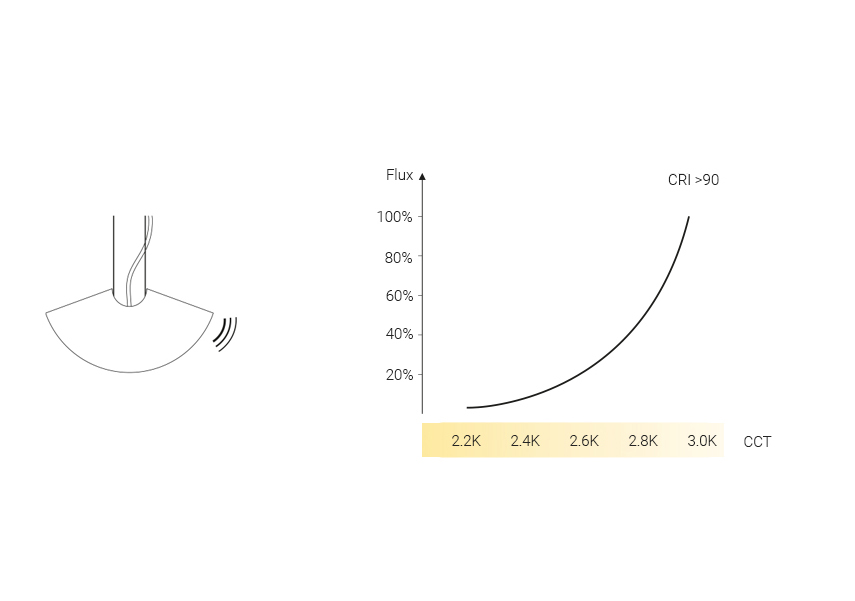 Przyglądając się naszym własnym preferencjom zauważyliśmy, że generalnie oczekujemy od oświetlenia dwóch funkcjonalności: mocnego, jasnego, naturalnego światła na czas aktywności, oraz przyciemnionego, delikatnego i ciepłego światła na czas relaksu i regeneracji. Dlatego wprowadziliśmy funkcję bezdotykowej regulacji światła „dim to warm”, które łączy funkcję ściemniania światła za pomocą gestu, połączonego ze zmianą jego temperatury. Jednym ruchem ręki możemy ustawić optymalne dla nas na dany moment światło – od jasnego i chłodnego, do przyciemnionego i ciepłego.
