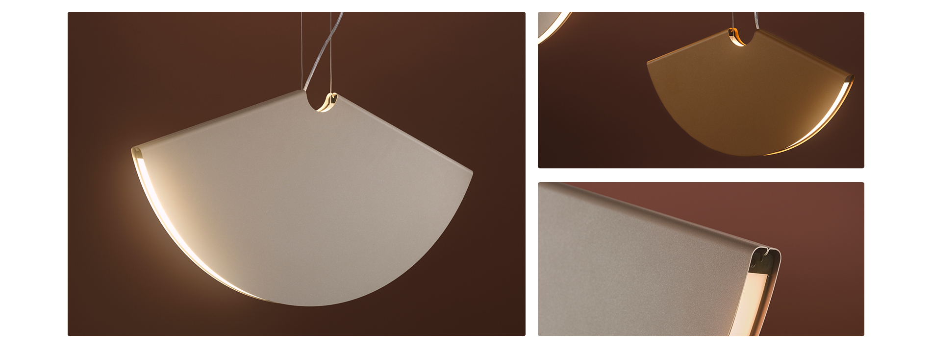 Nasza rodzina lamp oparta jest na kształcie Ogi, tradycyjnego, japońskiego składanego wachlarza. Odważny, geometryczny kształt w jednolitym kolorze i zaskakująco cienki profil tworzą ikoniczny, graficzny podpis - kaligraficzne pociągnięcie pędzla w powietrzu.
