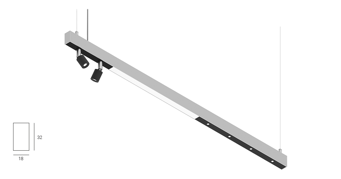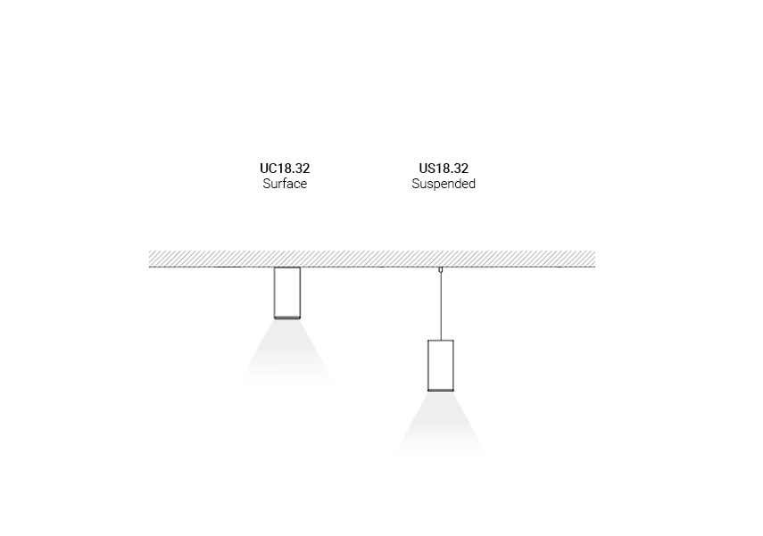 Profile U18.32 dostępne są w dwóch wariantach montażu: nabudowanym oraz zwieszanym. Dzięki temu można je łatwo dopasować do różnorodnych wnętrz, tworząc eleganckie lub efektowne rozwiązania świetlne w zależności od potrzeb projektu.