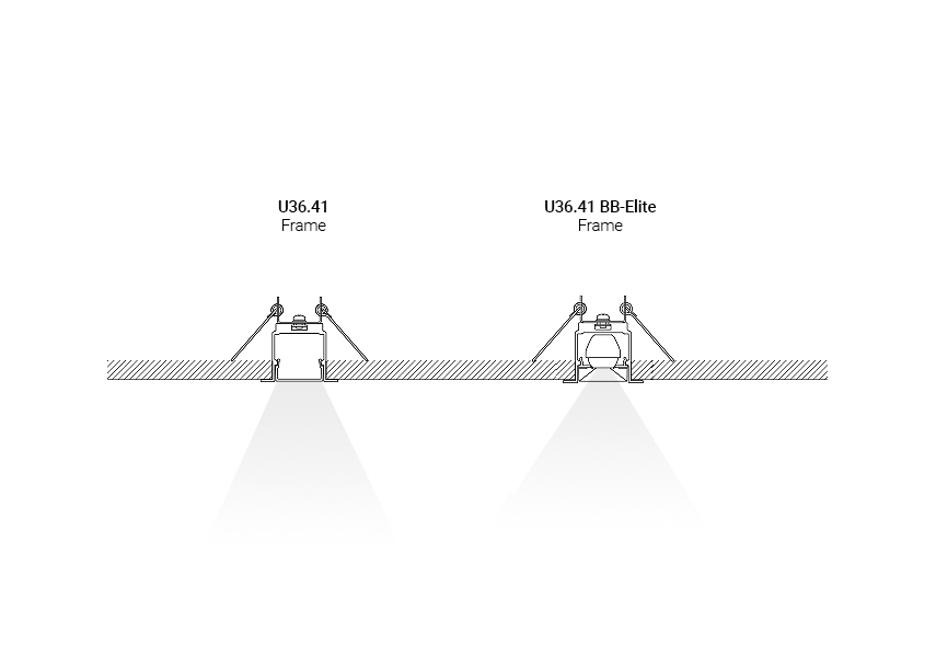 Profile U36.41 oferowane są w wersji wbudowanej z ramką, dyfuzorem C-Shade, który zapewnia równomierne i przyjemne dla oka oświetlenie. System można wyposażyć w moduły BB-Elite, charakteryzujące się wysoką wydajnością i nowoczesnym wyglądem, lub w moduły BB-Tube. Takie rozwiązanie pozwala na elastyczne dopasowanie profili do różnych przestrzeni – od biur i sal konferencyjnych, po obiekty handlowe czy użyteczności publicznej – łącząc funkcjonalność z eleganckim designem.