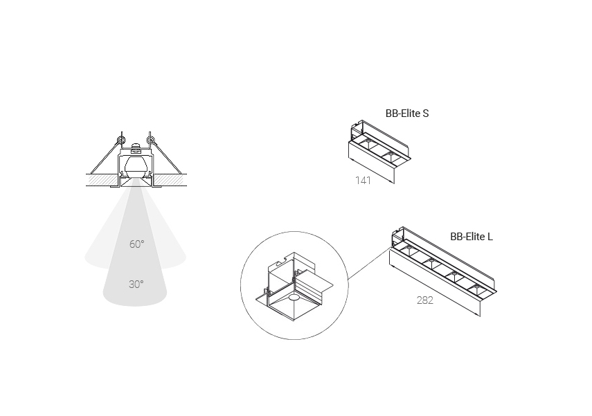 Optyka BB-Elite została dodatkowo wyposażona w antyolśnieniowy raster, który znacząco ogranicza efekt olśnienia i podnosi komfort widzenia, nawet w wymagających warunkach oświetleniowych. Dzięki temu rozwiązanie to idealnie sprawdza się w przestrzeniach, gdzie istotna jest zarówno wysoka jakość światła, jak i ergonomia wizualna, takich jak biura, obiekty komercyjne, galerie czy nowoczesne wnętrza mieszkalne.
