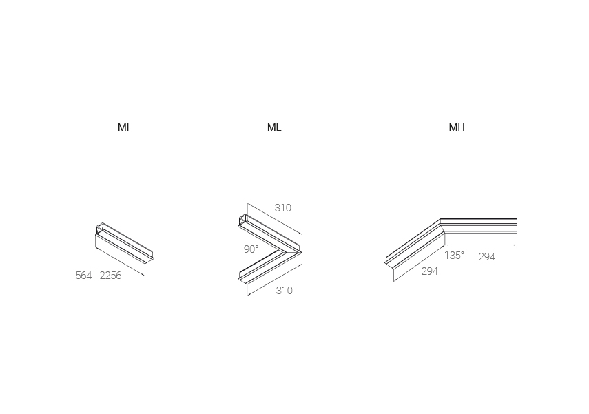 Oznaczenia łączników nawiązują do kształtu liter alfabetu lub ułożenia względem powierzchni, np. ML do litery L. Natomiast łącznik MH nawiązuje do poziomego ułożenia (z ang. horizontal) dwóch odcików połączonych pod kątem 135 stopni.